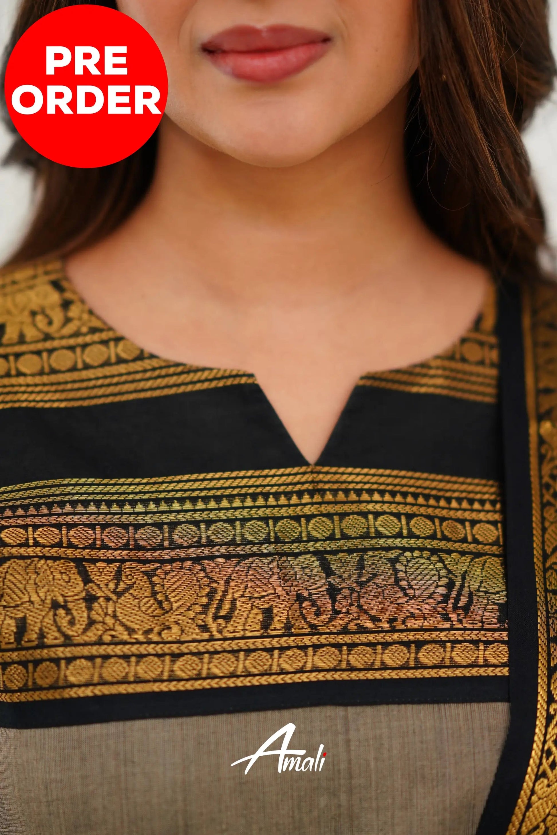 Mezos Cream tone and Black shade Cotton Kurta With Duppatta for Women