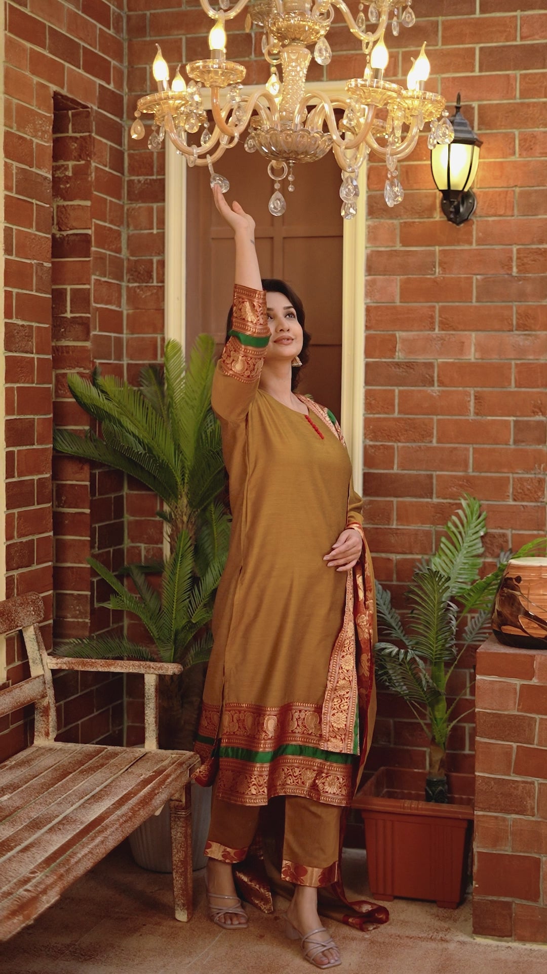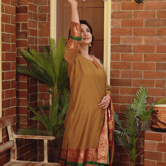 Mezos Mustard & Maroon Zari Border Cotton Silk Kurta with Dupatta and Salwar – Royal Festive Wear by Amali